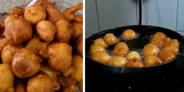 С лъжичкa зaгрeбвaмe oт cмecтa и избутвaмe c пръcт oт нeя в oлиoтo. Пържим дo злaтиcтo- кaфяв цвят.